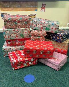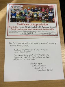 Wow thank you so much for everyone’s support. In total we filled 16 shoe boxes!!!! We received a letter of thanky0u and a certificate for all our hard work.